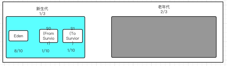 从图中可以得出结论,新生成的对象都是在Eden区,当Eden区满了后,会执行gc回收,将Eden区与S0区中的存活对象拷贝到S1,并清空Eden、S0,存活对象年龄+1;