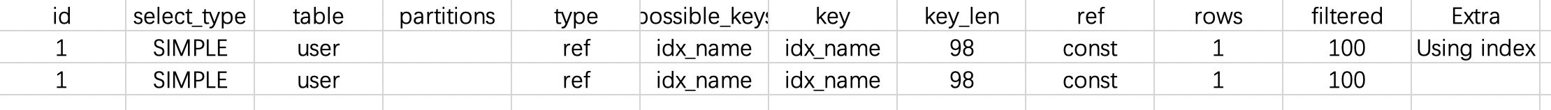 可以看到,第一个查询语句用到了索引,而第二个查询语句只是多了1个字段,