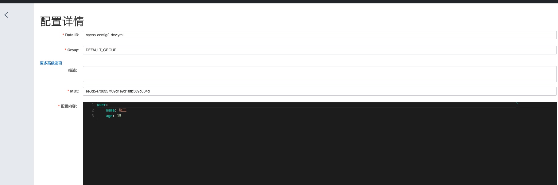 Data ID 是 nacos-config2-dev.yml,所以在 bootstrap.yml 配置文件中这么配置